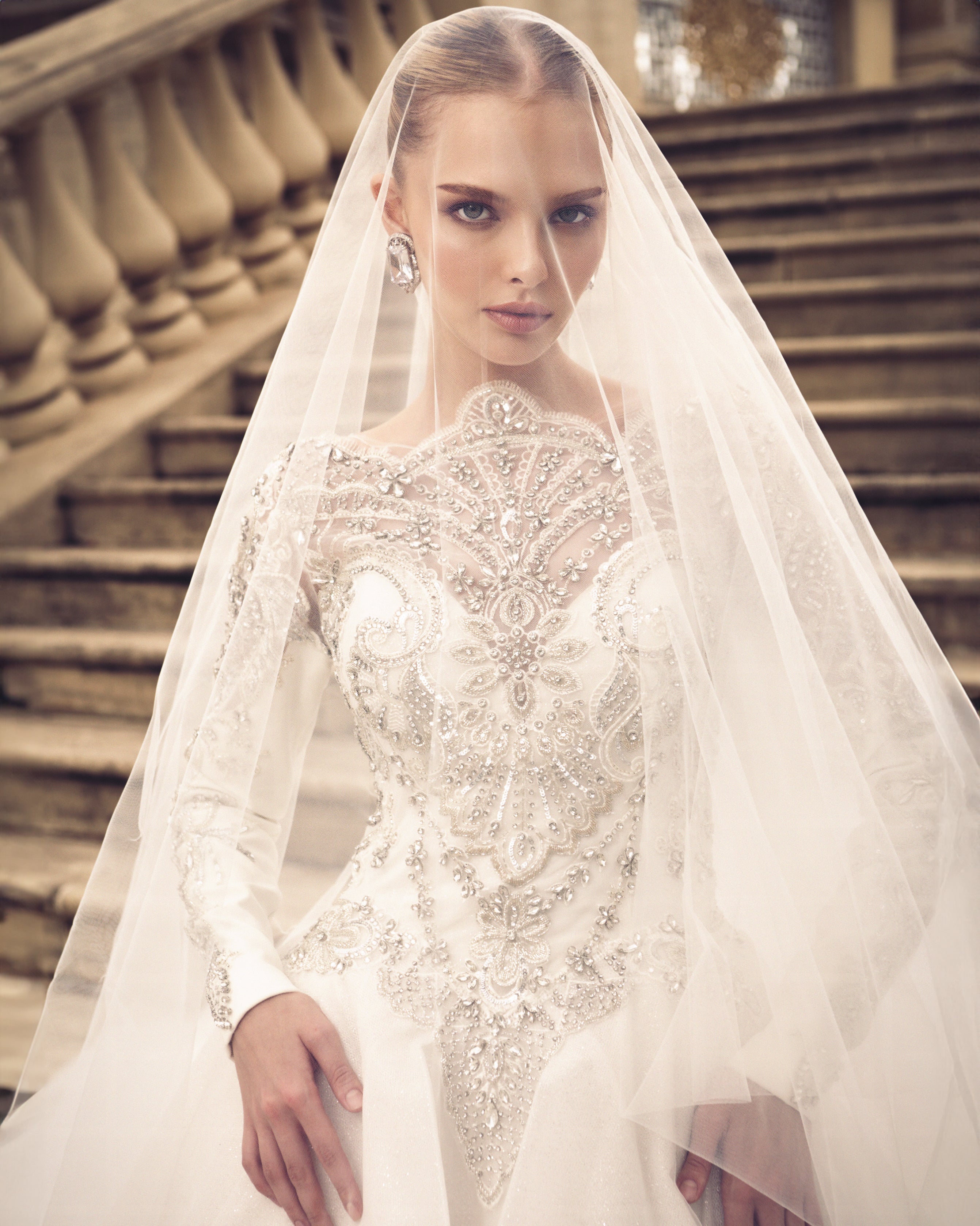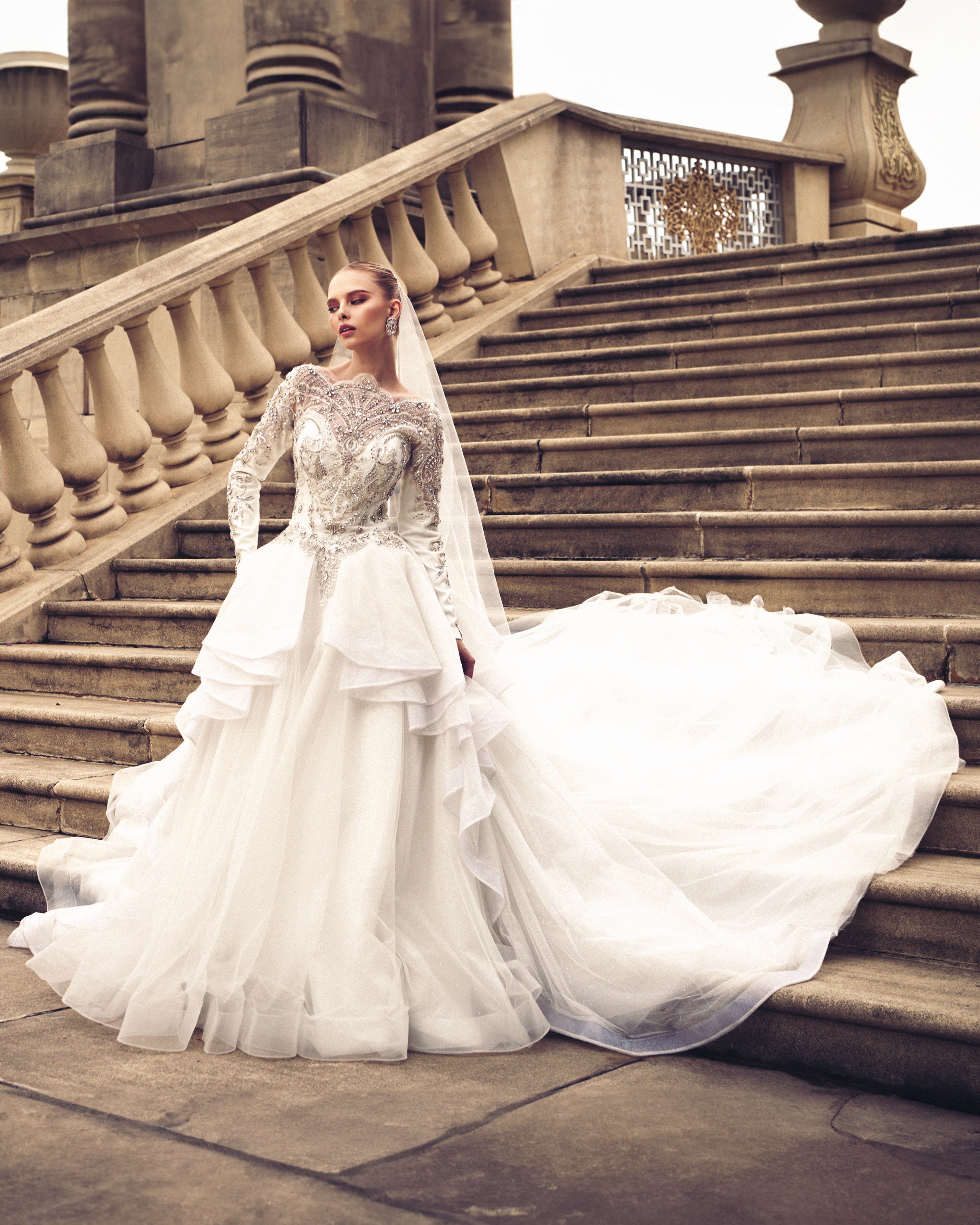 SearchIt’s like a symphony of jewels resting on a bed of clouds. The regality of our artisanal beadwork, framed exquisitely by generous swathes of tulle, makes for a dreamy wedding dress.
